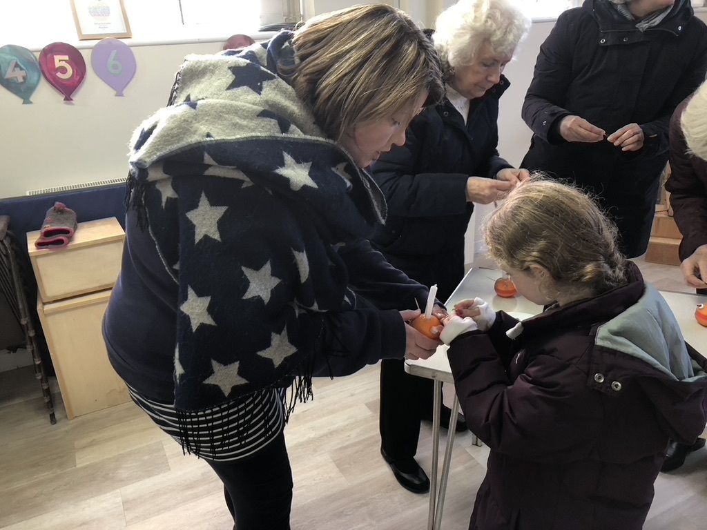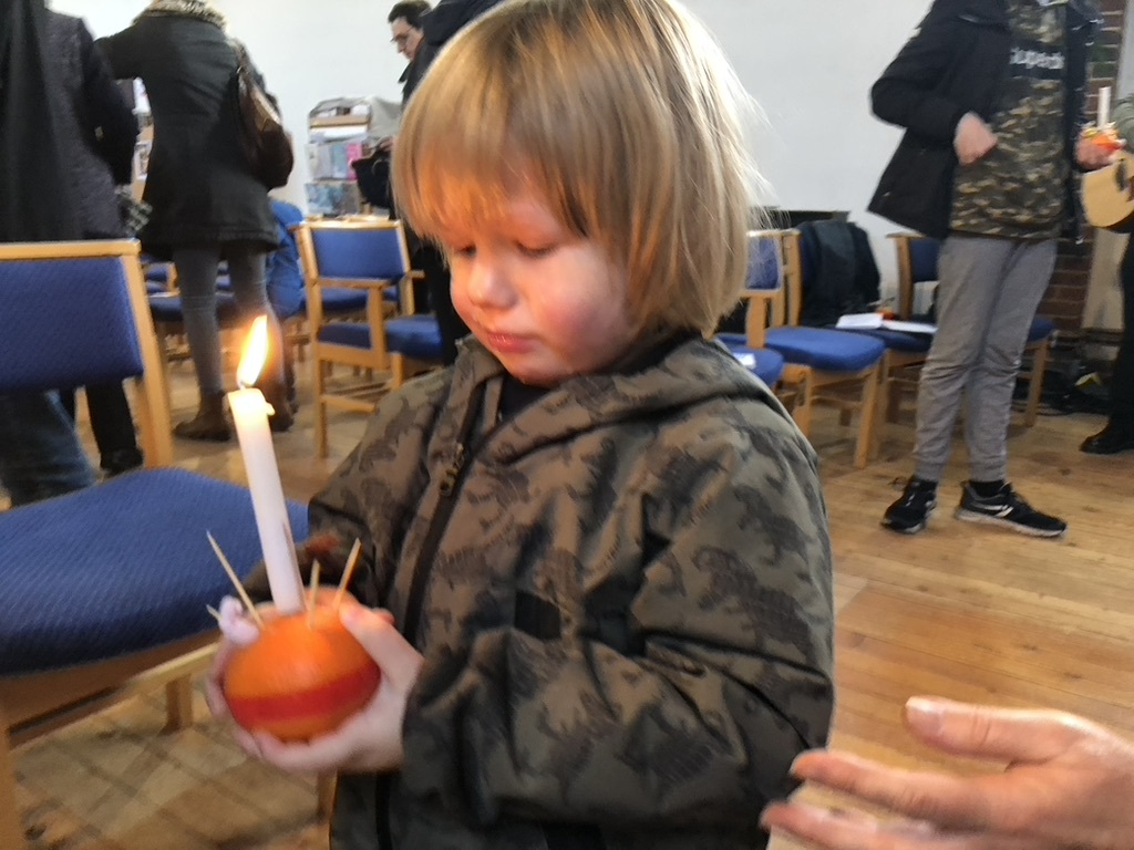 Our Children and Families Worker, Beth, organised our fabulous Christingle services this year! It was lovely to welcome several of our Sunshine Saints families to the service, and we all had loads of fun making (and eating!!) our Christingles. There was coffee and mince pies, lots of singing and some reflecting on how God always provides light in the darkness.