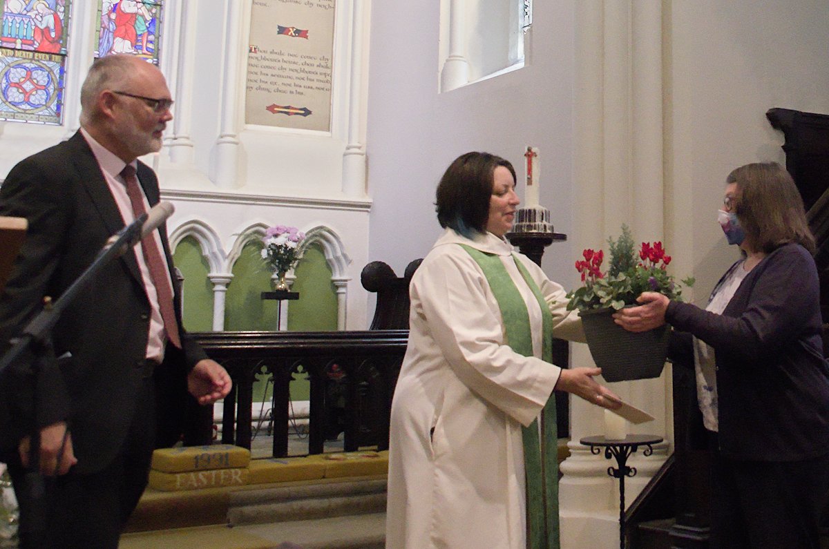 After the service, the churchwardens of the churches within the benefice presented Victoria with a card from the churches, a cheque for the money generously donated by our congregations and friends, and gifts of plants to remember us by.